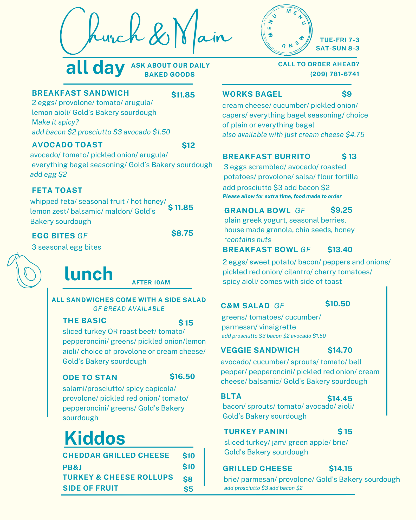 Tue-Fri 7-3p Sat-Sun 8-3p